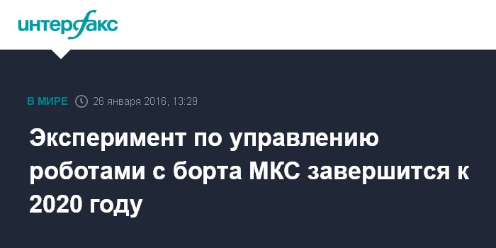 Москва. 26 января. INTERFAX.RU - Специалисты Центрального научно-исследовательского и опытно-конструкторского института робототехники и технической кибернетики (Санкт-Петербург) рассчитывают к 2020 году реализовать возможность управления несколькими роботами на Земле группой космонавтов, находящихся на борту Международной космической станции.