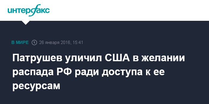 На уточняющий вопрос о том, хотят ли или не исключают США распада России на части, Патрушев ответил: "Вашингтон считает, что при желании способен сыграть роль катализатора этого процесса".
