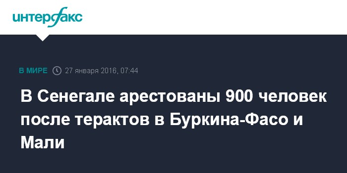 Москва. 27 января. INTERFAX.RU - Полиция в Сенегале арестовала 900 человек в рамках спецоперации после нападений боевиков в Буркина-Фасо и Мали.