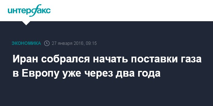 Москва. 27 января. INTERFAX.RU - Иран ищет новые возможности для экспорта и добычи природного газа, включая развитие мощностей по сжижению газа, чтобы начать его поставки в Европу в течение двух лет, сообщил The Wall Street Journal управляющий директор National Iranian Gas Export Co Алиреза Камели.