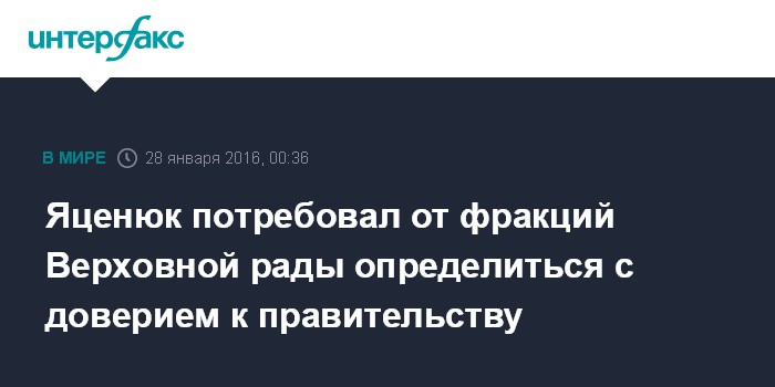 Москва. 28 января. INTERFAX.RU - Глава фракции "Народный фронт" Верховной рады Украины Максим Бурбак сообщил, что премьер-министр Украины Арсений Яценюк потребовал от парламентских фракций определиться с доверием к правительству.