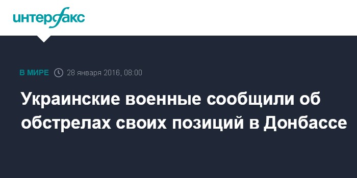 Москва. 28 января. INTERFAX.RU - Пресс-центр силовой операции украинских военных на юго-востоке страны опубликовал в четверг на своей странице в Facebook сообщение, в котором говорится, что ополченцы за сутки обстреляли позиции украинских военных 40 раз.
