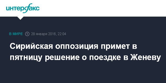 Москва. 28 января. INTERFAX.RU - Сирийская оппозиция вновь перенесла день решения о своем участии в женевских переговорах, сообщили в четверг западные СМИ.