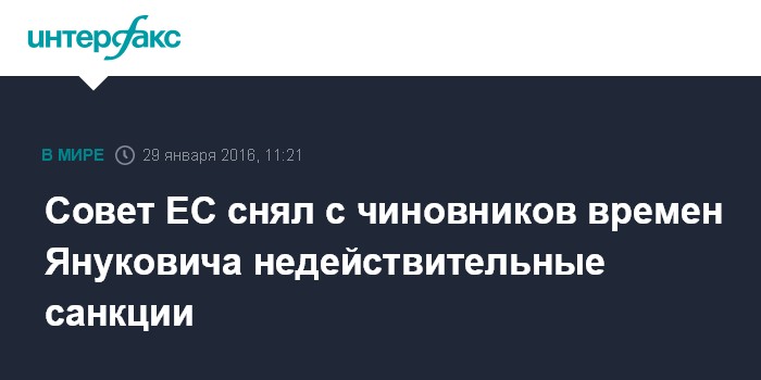 Москва. 29 января. INTERFAX.RU - Совет Европейского Союза снял с украинских чиновников времен экс-президента Виктора Януковича (2010-2014 год) старые и уже недействительные санкции, заявил заместитель генерального прокурора Виталий Касько.