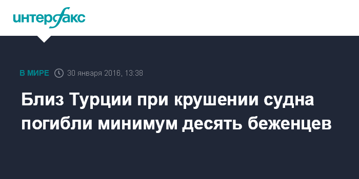 Москва. 30 января. INTERFAX.RU - Не менее 10 мигрантов, среди них пятеро - дети, погибли в результате крушения судна у турецкого побережья, сообщили в субботу местные СМИ.