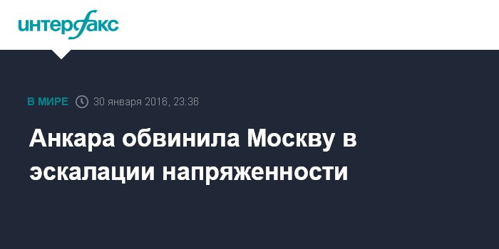 Москва. 30 января. INTERFAX.RU - МИД Турции заявляет, что якобы имевшее место нарушение воздушного пространства страны российским истребителем-бомбардировщиком Су-34 говорит о том, что действия России направлены на эскалацию напряженности в отношениях между двумя странами.
