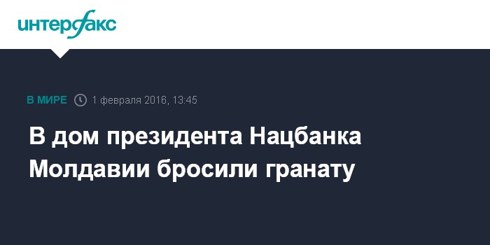 Москва. 1 февраля. INTERFAX.RU - Минувшей ночью неизвестные бросили гранату в дом президента Национального банка Молдавии, сообщила "Интерфаксу" пресс-секретарь Генеральной прокуратуры Мария Виеру.