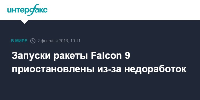 Москва. 2 февраля. INTERFAX.RU - Пуски американской ракеты Falcon 9 разработки SpaceX Илона Маска приостановлены из-за технических проблем, рассказали "Интерфаксу" в российской ракетно-космической отрасли во вторник.