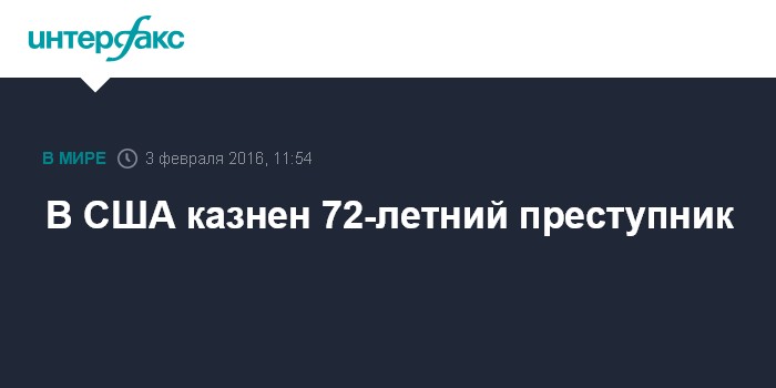 Москва. 3 февраля. INTERFAX.RU - В штате Джорджия казнен 72-летний Брэндон Астор Джонс (Brandon Astor Jones), старейший в штате из приговоренных к высшей мере наказания, сообщает Associated Press.