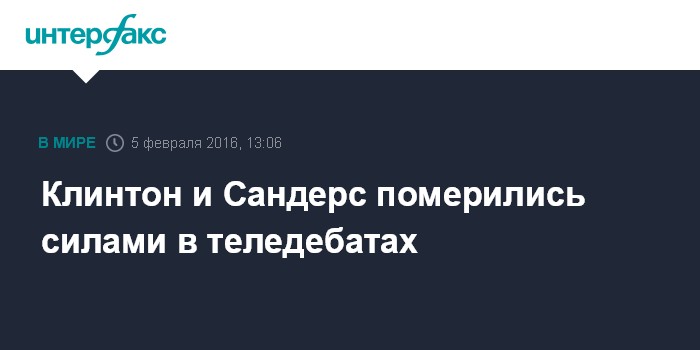 Москва. 5 февраля. INTERFAX.RU - Участники первичных выборов от Демократической партии США Хиллари Клинтон и Берни Сандерс атаковали друг друга по острым вопросам на очередных теледебатах,сообщает в пятницу американская пресса.