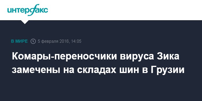 Москва. 5 февраля. INTERFAX.RU - В Грузии не видят угрозы распространения вируса лихорадки Зика, однако комаров рода Aedes, которые являются переносчиками этого заболевания, специалисты фиксировали в стране уже два раза.