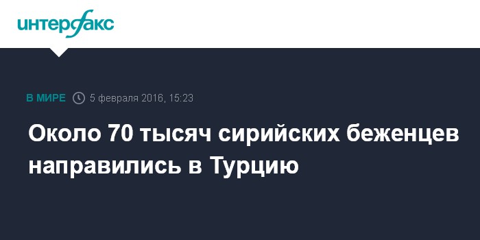 Москва. 5 февраля. INTERFAX.RU - Около 70 тысяч сирийцев ищут убежище в Турции, заявил глава турецкого МИД Ахмед Давутолгу. Статистика мониторинговой группы говорит о цифре в 40 тысяч сирийских беженцев, направившихся к турецкой границе, сообщает BBC.