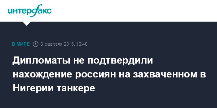 Москва. 6 февраля. INTERFAX.RU - Посольство РФ в Нигерии пока не подтверждает, что на борту захваченного в Гвинейском заливе нефтеналивного танкера есть гражданин России.