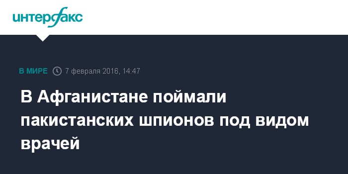 Москва. 7 февраля. INTERFAX.RU - В северо-восточной провинции Афганистана Бадахшан спецслужбы арестовали пятерых агентов пакистанской межведомственной разведки (ISI), сообщило национальное управление безопасности Афганистана.