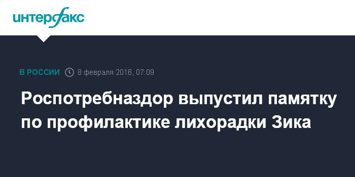 Москва. 8 февраля. INTERFAX.RU - Роспотребнадзор рекомендует туристам, посещающим станы в которых выявлена лихорадка Зика, защищаться от укусов комаров, сообщается в понедельник на сайте ведомства.