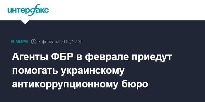 Москва. 8 февраля. INTERFAX.RU - Представители Федерального бюро расследований (ФБР) США, которые будут помогать Национальному антикоррупционному бюро Украины в отслеживании денежных потоков, прибудут в Киев в феврале, заявил директор НАБУ Артем Сытник.