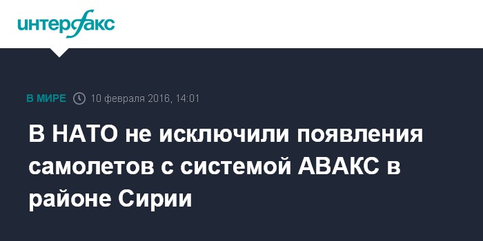 Москва. 10 февраля. INTERFAX.RU - Генсек НАТО Йенс Столтенберг выразил надежду на то, что министры обороны альянса в среду одобрят запрос США о предоставлении самолетов с системами АВАКС для ведения разведки в районе Сирии.