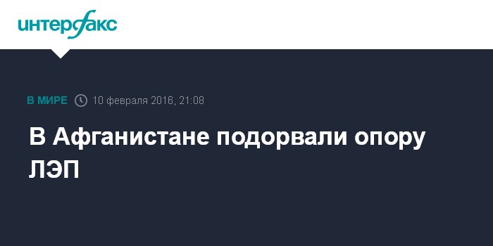 По его данным, опора была подорвана в районе Данди-Шахобовуддин провинции Баглан на севере Афганистана. Тем не менее, как отмечает телеканал, подача электричества по этой линии не прекращена.
