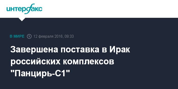 Москва. 12 февраля. INTERFAX.RU - "Рособоронэкспорт" успешно выполнил контракт на поставку в Ирак большой партии зенитных ракетно-пушечных комплексов "Панцирь-С1", сообщил "Интерфаксу" в пятницу источник, близкий к сфере ВТС.
