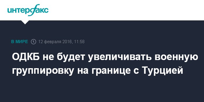 Так он ответил на вопрос, планирует ли ОДКБ усиливать группировку войск, находящихся на границе с Турцией, учитывая обострение отношений между двумя странами, возникшее после того, как турецкие ВВС сбили российский бомбардировщик Су-24 24 ноября 2015 года.