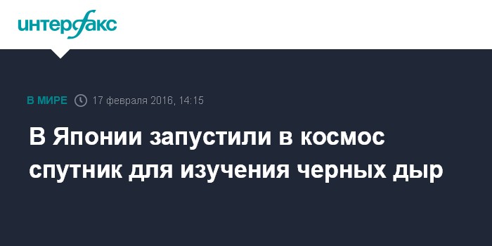 Москва. 17 февраля. INTERFAX.RU - Японское космическое агентство JAXA провело успешный запуск в космос спутника Astro-H, которому предстоит собирать информацию о черных дырах, сообщает в среду агентство EFE.