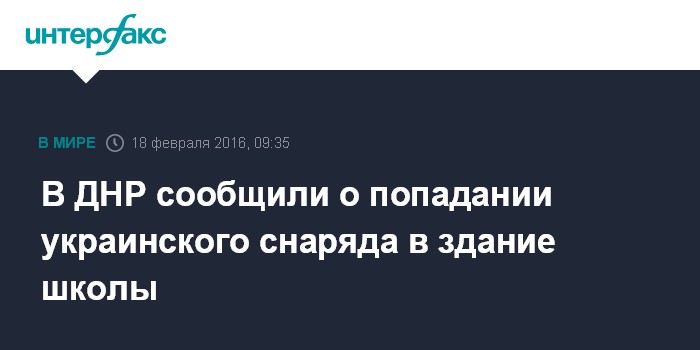 Москва. 18 февраля. INTERFAX.RU - В результате ночного обстрела украинскими военными поселка Старомихайловка снаряд попал в здание школы, сообщили в штабе самопровозглашенной Донецкой народной республики (ДНР) в Зайцево.