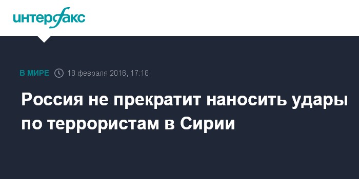 Москва. 18 февраля. INTERFAX.RU - Россия намерена продолжить операцию ВКС в Сирии по борьбе с терроризмом, заявила официальный представитель МИД РФ Мария Захарова.