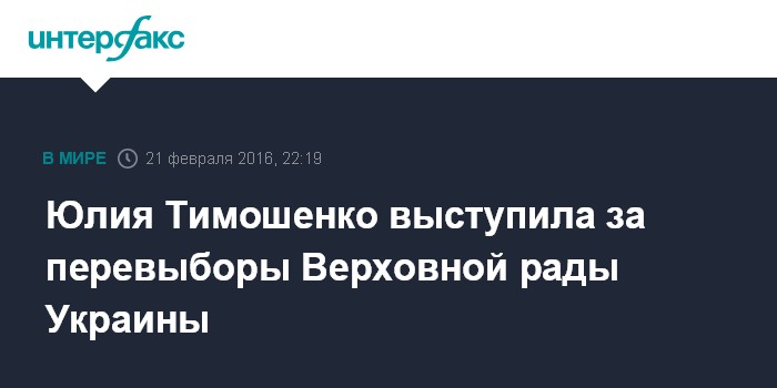 Москва. 21 февраля. INTERFAX.RU - Лидер украинской партии "Батькивщина" Юлия Тимошенко выступила за перевыборы нынешнего парламента. Она обозначила свою позицию в эфире телеканала "Интер" в воскресенье вечером.