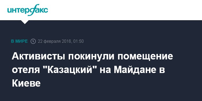 Москва. 22 февраля. INTERFAX.RU - Представители украинского объединения "Радикальные правые силы" (РПС) покинули помещение отеля "Казацкий" у Майдана Независимости в центре Киева, сообщил в понедельник отдел коммуникации Главного управления Национальной полиции в Киеве.