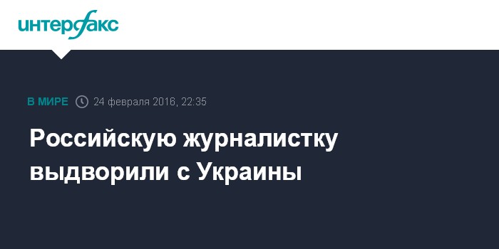 Москва. 24 февраля. INTERFAX.RU - С Украины выдворили гражданку РФ Марию Столярову, работавшую на телеканале "Интер" продюсером программы "Подробности недели" и уволенную после скандала с сюжетом о погибших участниках "евромайдана".