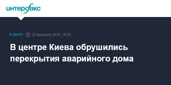 Москва. 25 февраля. INTERFAX.RU - В центре Киева в отселенном аварийном здании обрушились перекрытия между подвалом и первым этажом, в результате чего оказались завалены находившиеся в подвале строители.
