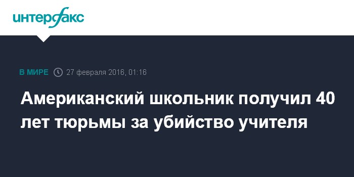Американский школьник получил 40 лет тюрьмы за убийство учителя