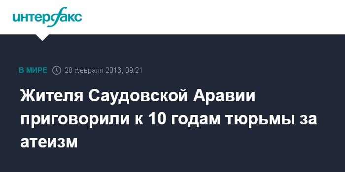 Жителя Саудовской Аравии приговорили к 10 годам тюрьмы за атеизм