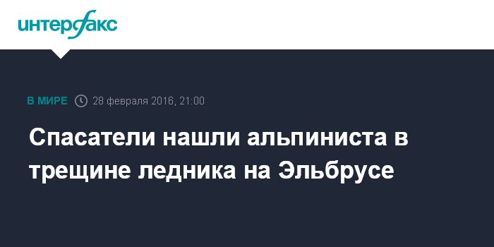 Москва. 28 февраля. INTERFAX.RU - Поиски, упавшего в трещину ледника альпиниста на Эльбрусе, завершены, сообщает Северо-Кавказский региональный центр МЧС России.