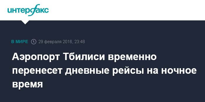 Москва. 29 февраля. INTERFAX.RU - Тбилисский международный аэропорт имени Шота Руставели с первого марта по первое июля вводит специальный временной график обслуживания самолетов, в течение которого не будут выполняться дневные рейсы.