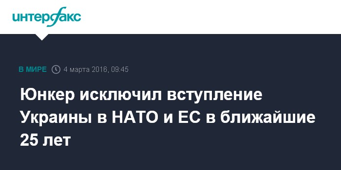 Москва. 4 марта. INTERFAX.RU - Председатель Еврокомиссии Жан-Клод Юнкер, выступая в Гааге, заявил о том, что в ближайшие десятилетия Украина не сможет вступить в ЕС или блок НАТО.