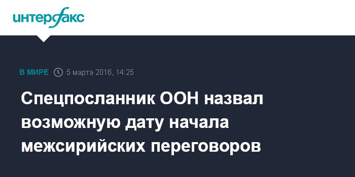 Москва. 5 марта. INTERFAX.RU - Межсирийские переговоры, предположительно, начнутся 10 марта, заявил специальный посланник ООН по Сирии Стаффан де Мистура.