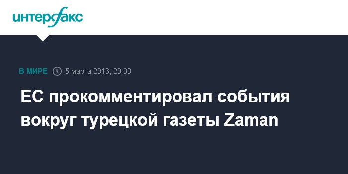 Москва. 5 марта. INTERFAX.RU - Евросоюз внимательно следит за сообщениями о вчерашних событиях в Турции, связанных с Feza Media Group, в том числе с газетой Zaman и действиями полиции в отношении издания, заявил в субботу официальный представитель Европейской внешнеполитической службы (ЕВС).