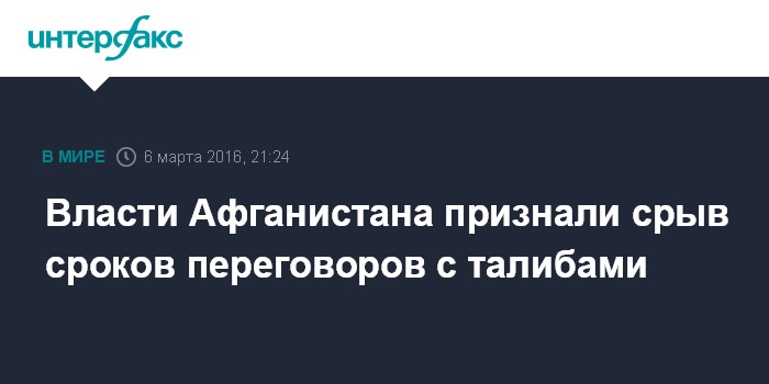 Москва. 6 марта. INTERFAX.RU - Мирные переговоры между представителями афганского правительства и движения "Талибан" отложены, сообщили афганские СМИ со ссылкой на заместителя пресс-секретаря главы исполнительной власти Афганистана Джавида Фейсала.