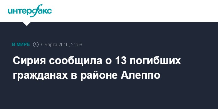 Сирия сообщила о 13 погибших гражданах в районе Алеппо