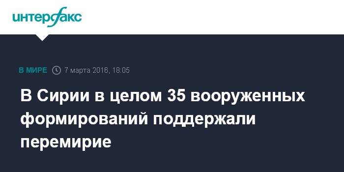 В Сирии в целом 35 вооруженных формирований поддержали перемирие