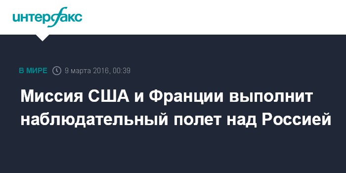 Миссия США и Франции выполнит наблюдательный полет над Россией