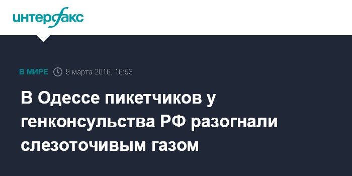 Москва. 9 марта. INTERFAX.RU - В Одессе против представителей ряда украинских организаций, в том числе "Правого сектора" (запрещена в РФ - ИФ), "Самообороны" и других, пикетировавших здание генерального консульства РФ, применили слезоточивый газ. Участники акции требовали освободить украинскую летчицу Надежду Савченко.