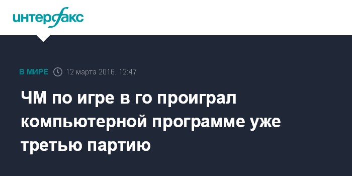 ЧМ по игре в го проиграл компьютерной программе уже третью партию