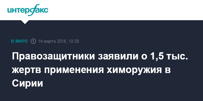 Москва. 14 марта. INTERFAX.RU - За время конфликта в Сирии химоружие применялось 161 раз, жертвами этих атак стали не менее 1,5 тыс. человек, сообщает в понедельник агентство AP со ссылкой на доклад Сирийско-американского медицинского общества.