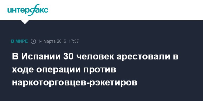 Москва. 14 марта. INTERFAX.RU - Полиция Испании арестовала 30 человек, обвиняемых в грабеже, похищениях и пытках наркоторговцев с целью завладения их преступным бизнесом, говорится в заявлении МВД Испании, обнародованном в понедельник.