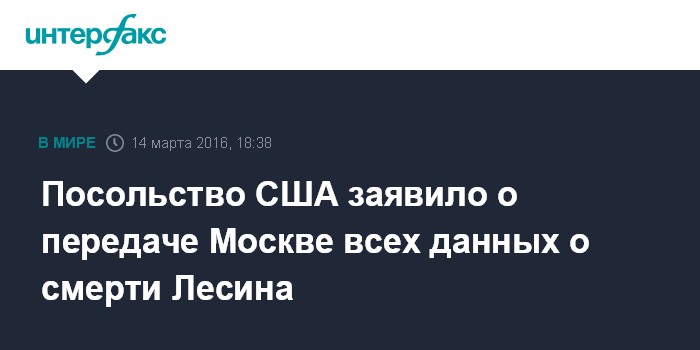 Посольство США заявило о передаче Москве всех данных о смерти Лесина
