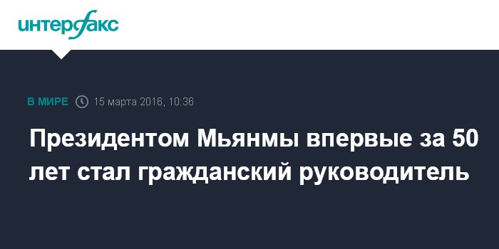 Москва. 15 марта. INTERFAX.RU - Парламент Мьянмы выбрал новым президентом Тхин Чжо, который, таким образом, стал первым гражданским руководителем страны за более чем 50 лет, сообщает во вторник "Би-Би-Си".