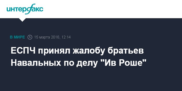 Москва. 15 марта. INTERFAX.RU - Европейский суд по правам человека (ЕСПЧ) рассмотрит жалобу братьев Алексея и Олега Навальных, осужденных по делу "Ив Роше".