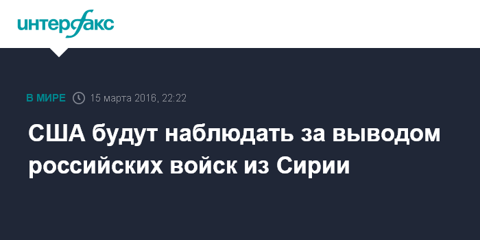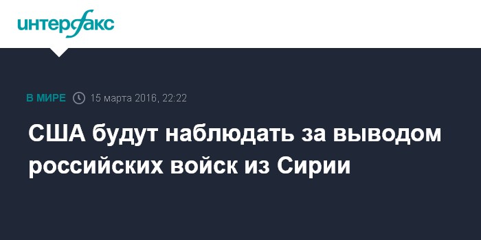 Москва. 15 марта. INTERFAX.RU - В госдепе США хотели бы понаблюдать, как будет проходить вывод российских войск из Сирии, сообщил во вторник, отвечая на вопрос журналиста, представитель американского внешнеполитического ведомства Джон Кирби.